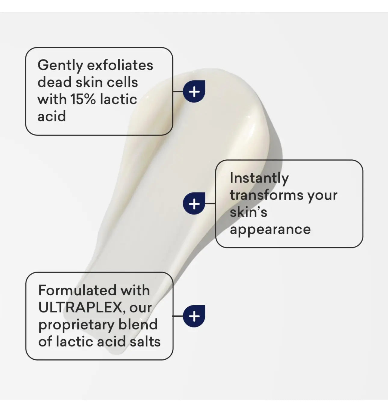 - Clinically-supported concentration: A clinical trial on lactic acid showed that the most significant skin improvements were achieved with 10% lactic acid or higher; this lotion contains the equivalent of 15% for potent skincare