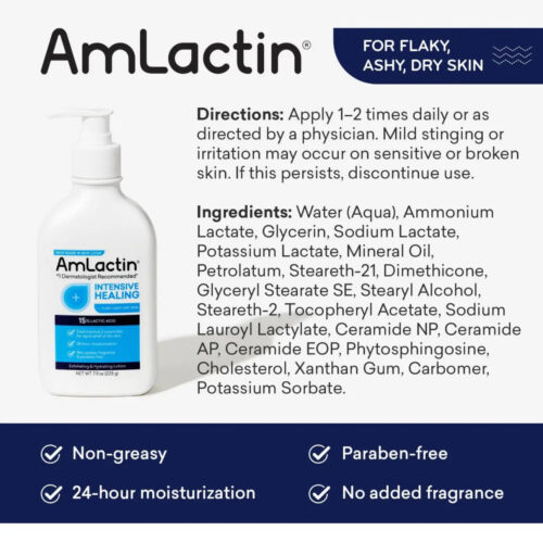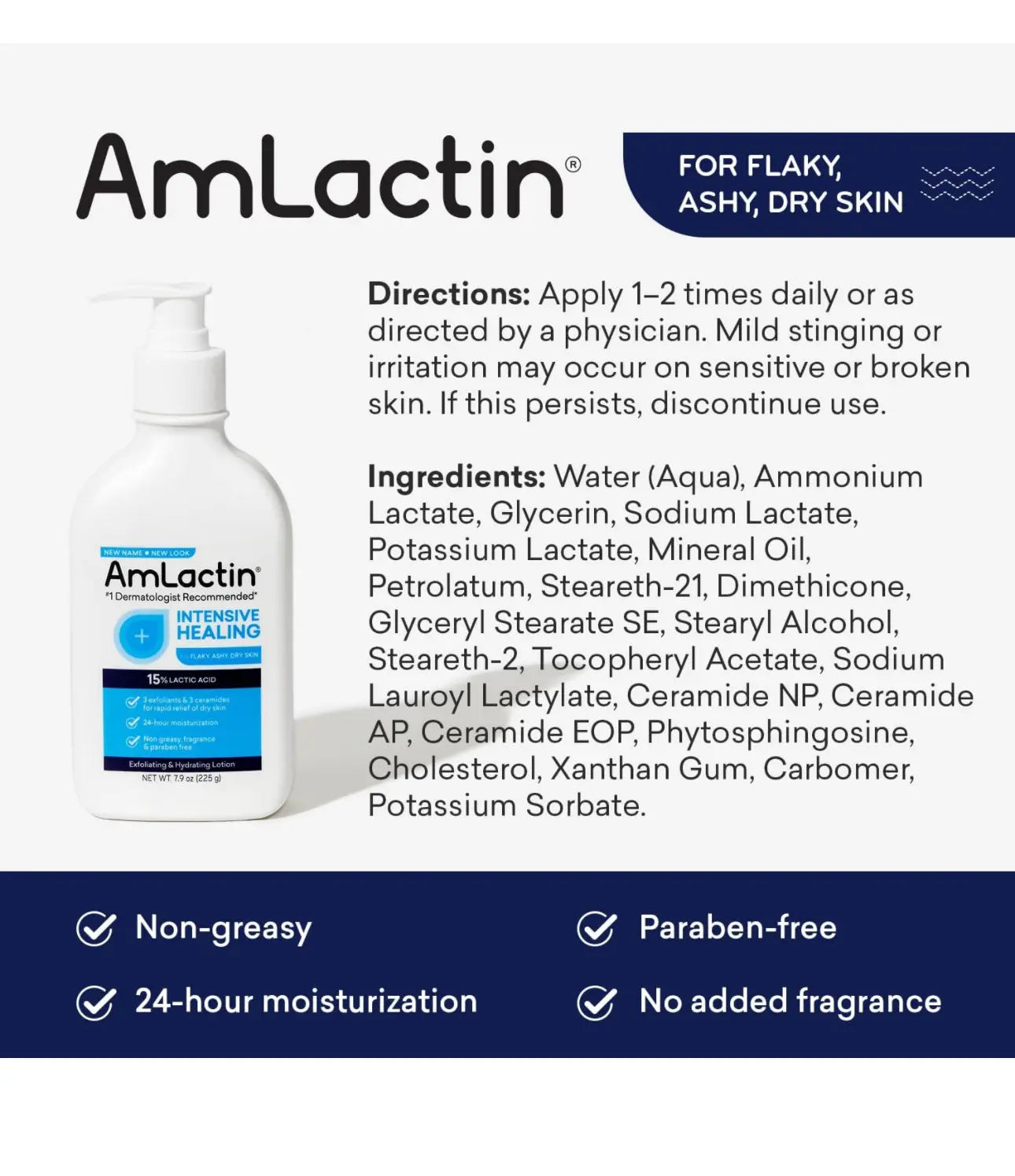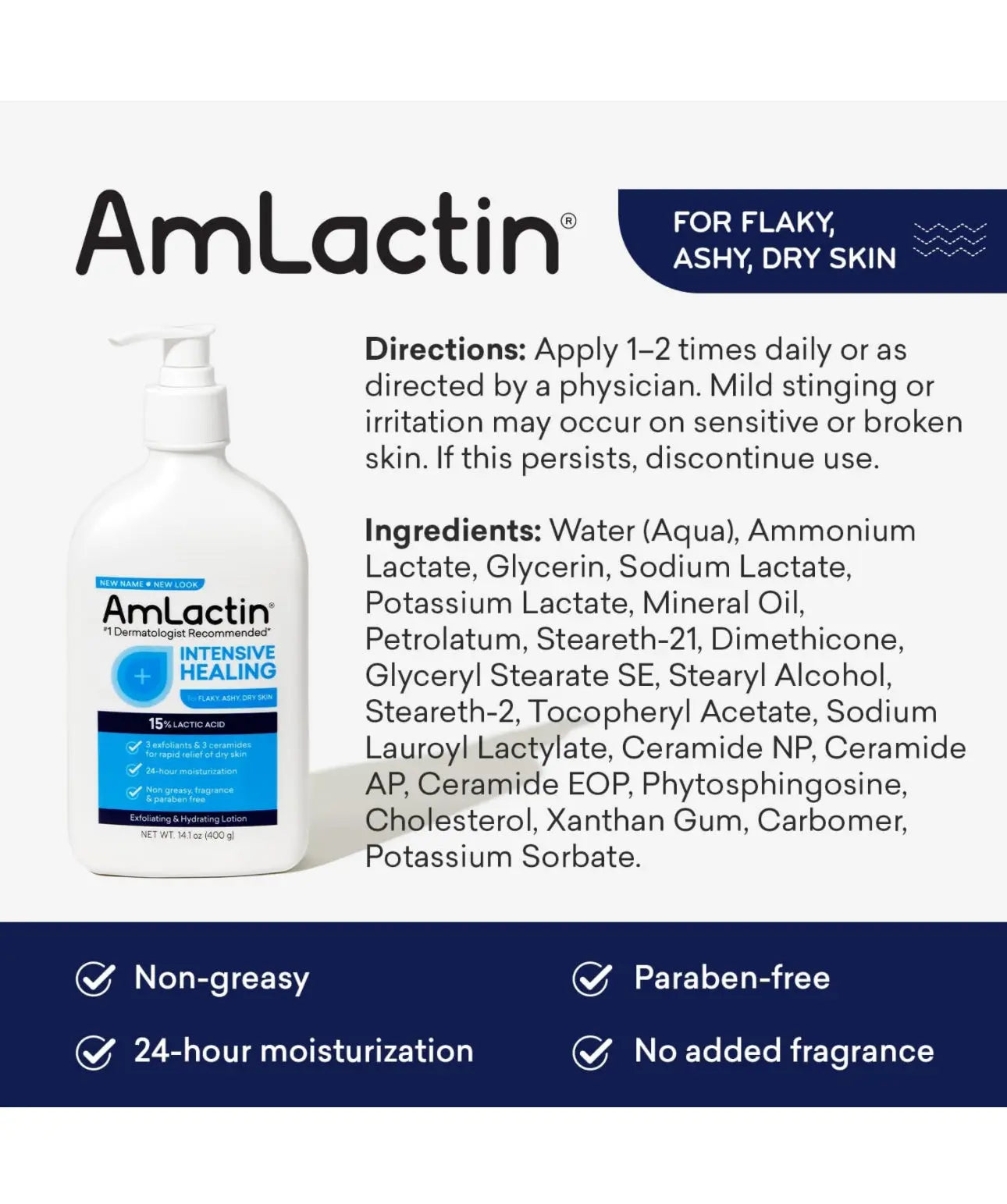 - Our formula: Intensive Healing uses 15% lactic acid, a gentle yet effective AHA, to exfoliate dead skin cells and promote skin cell turnover, while intensely hydrating with 3 ceramides for rapid relief of dry skin