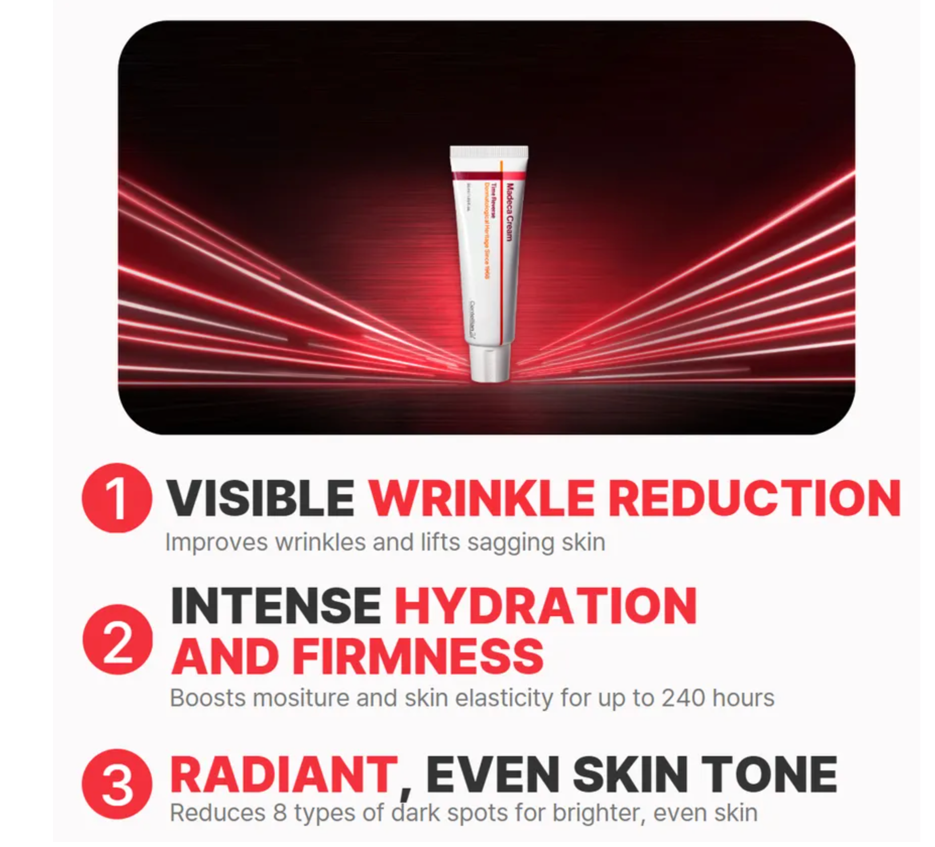 - Patented ingredient – Madeca™ Science contains 12 types of Cica ingredients to maximize soothing effect.