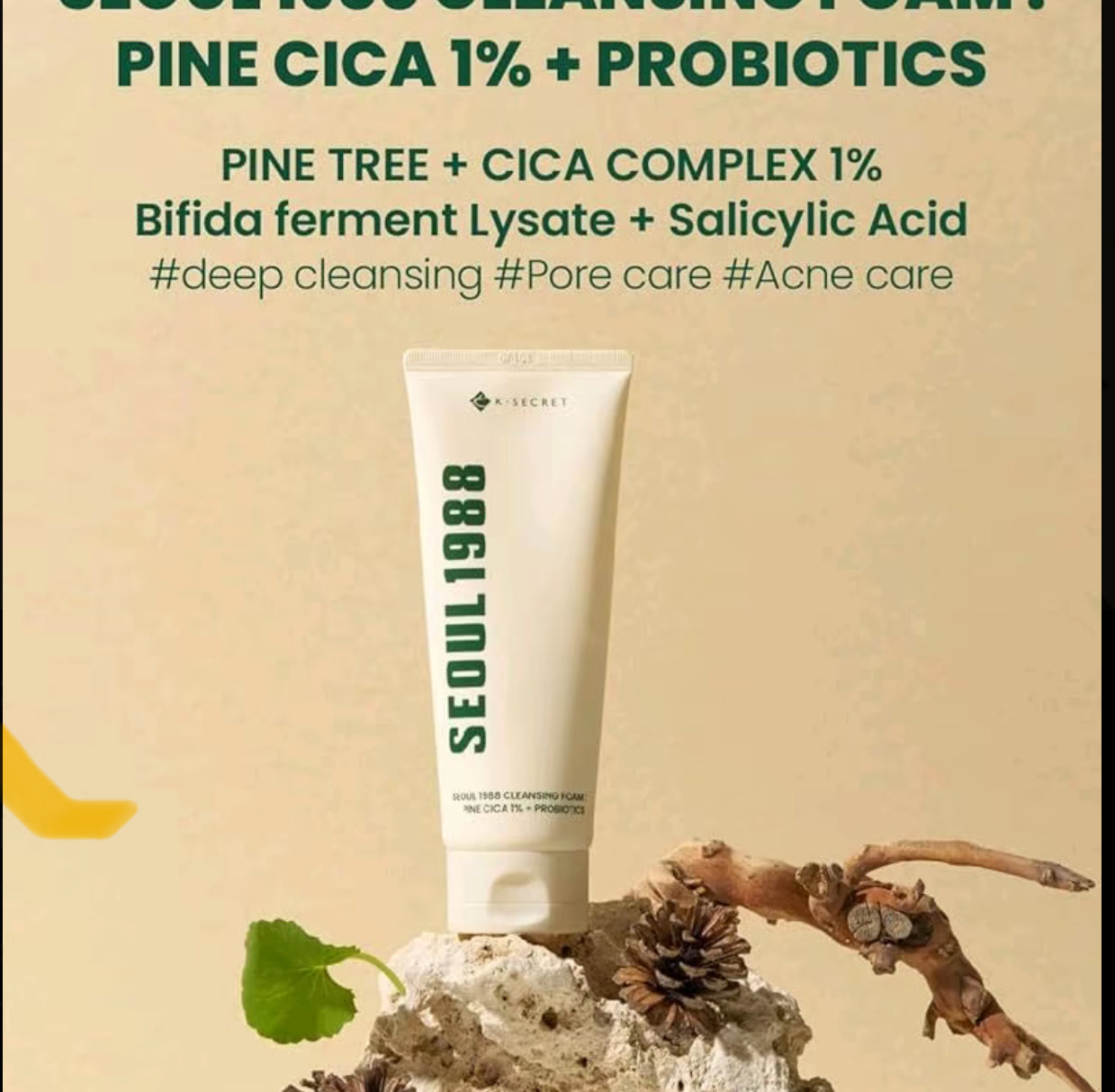 K-Secret Seoul 1988 Cleansing Foam Pine Cica 1+ Probotics 150ml is a gentle