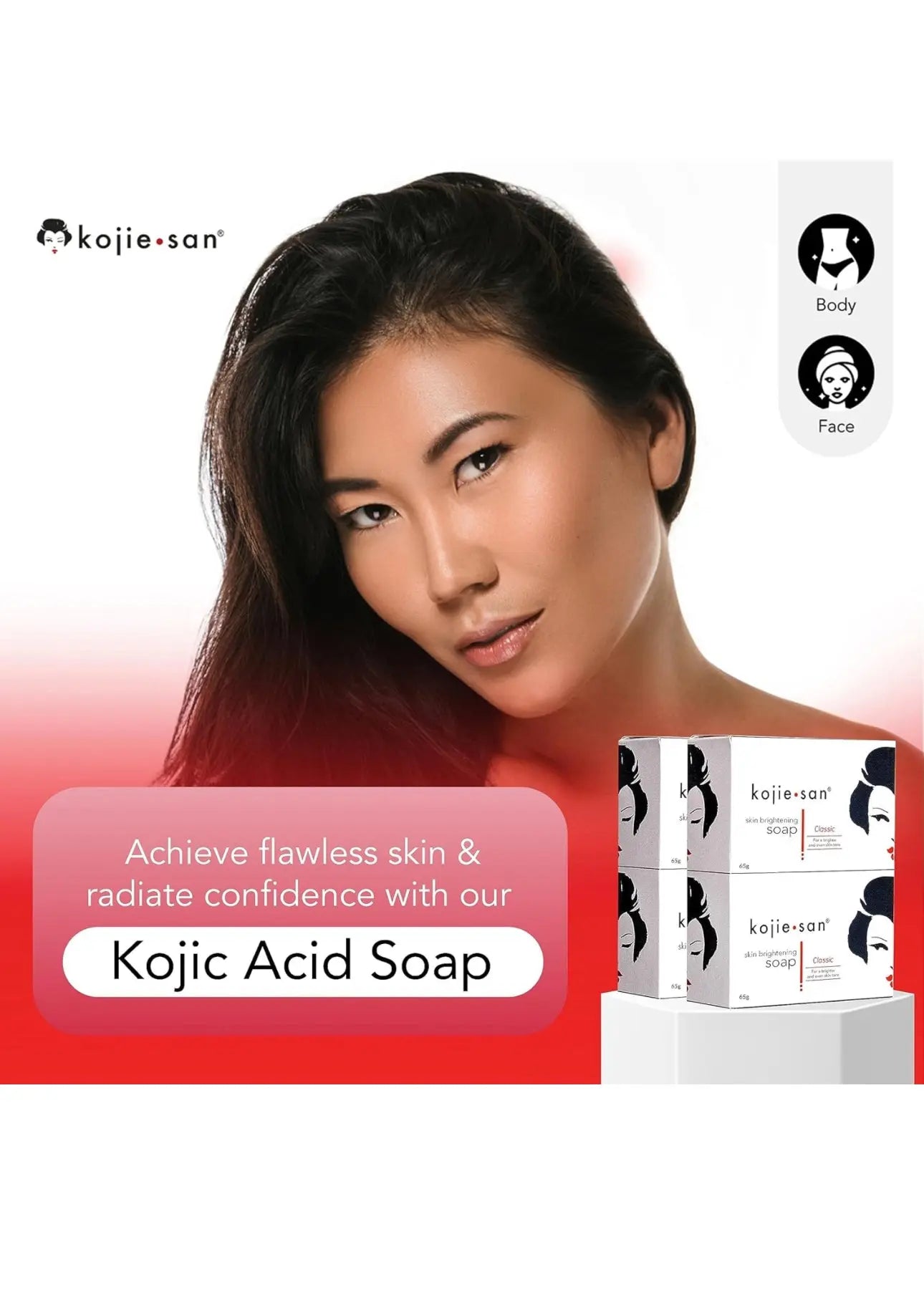 - Flawless Skin from Head to Toe: Original Kojie San Kojic Acid Soap is a wonderful facial soap that also moisturizes and perfects skin appearance. Use this bar soap to help reduce hyperpigmentation, and improve underarms and dark-looking skin on the inner thighs, face and neck.