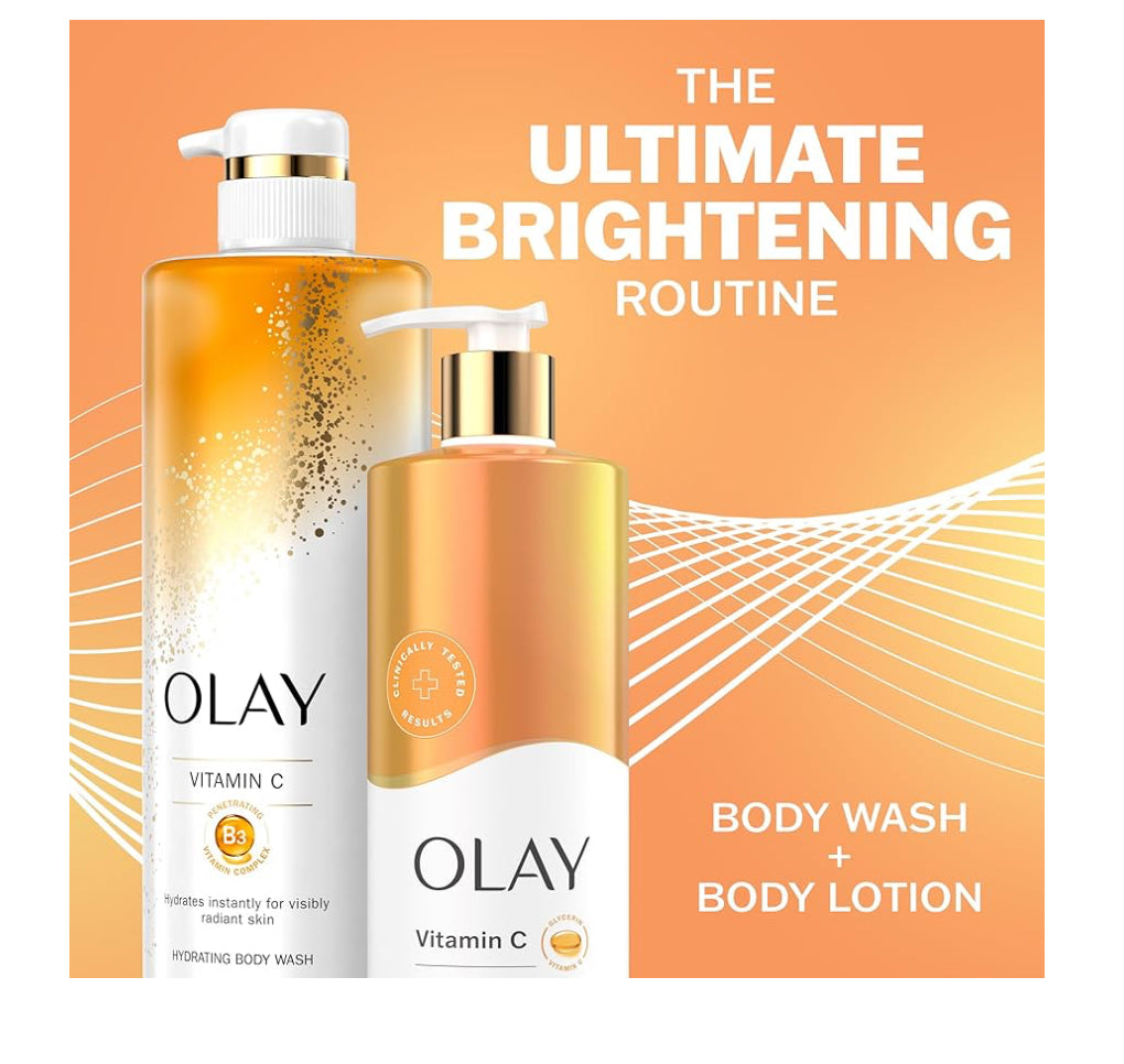 Achieve brighter, more radiant skin with OLAY Vitamin C Body Wash & Lotion. This set includes a 591ML body wash and 502ML lotion, both infused with vitamin C for body brightening. Reveal your skin’s natural glow with this expertly formulated product.