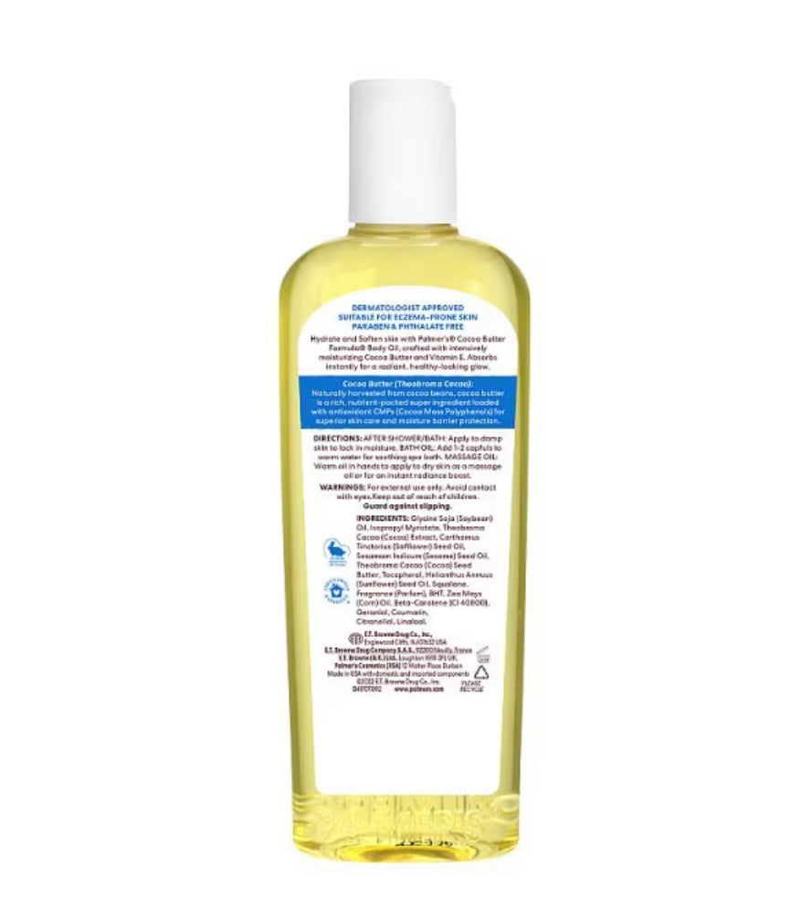 Indulge your skin with Palmer Moisturising Body Oil. This luxurious blend of nourishing oils deeply hydrates and softens, leaving your skin feeling silky smooth and delicately scented. Say goodbye to dry, flaky skin and hello to a natural, radiant glow. Treat yourself to the ultimate pampering experience.