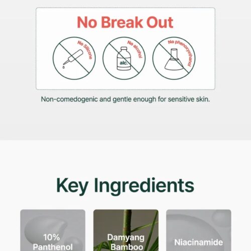 - Korean Damyang Bamboo mimics the body’s moisture and strengthens the skin barrier, creating a moisture barrier; 10% Panthenol fortifies the skin barrier, and Squalane boosts moisture levels.